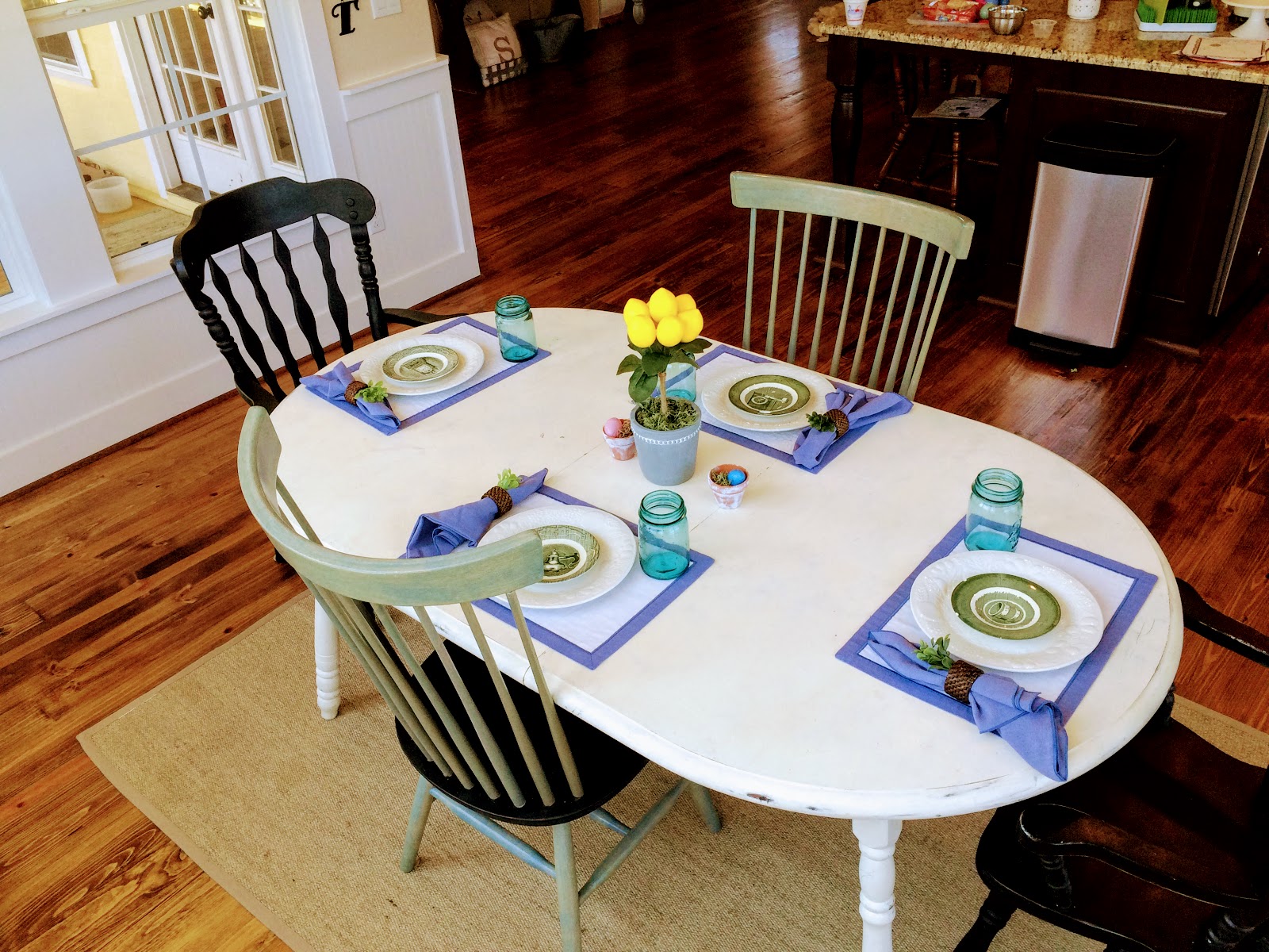 This Easter tablescape created by Carolynn. Didn't she do a good job?! She also had an idea for the mini lemons, and begged me not to return them. More on that another day. |
